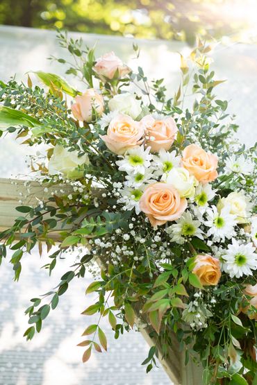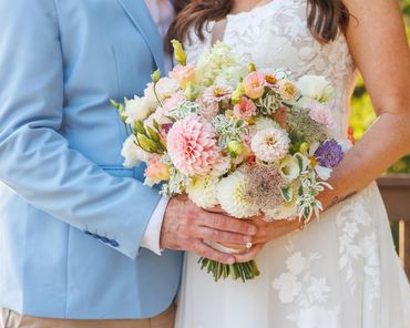Top notch, luxuriously beautiful blooms to make a statement at your wedding. Only the freshest cut, local blooms arranged for your wedding vision, and wrapped in ribbon of your choice