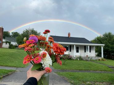You can be assured that the floral arrangements are sourced primarily from her own cut flower garden in Southwest Virginia, and other local growers in the area.